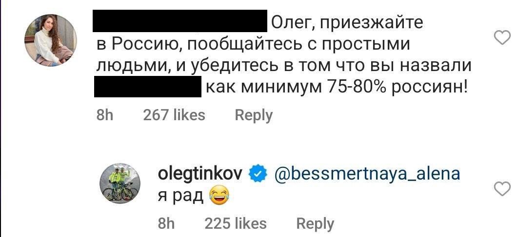 Тем временем, "Тинькофф-банк" в своём Телеграм-канале написал, что Олег Тиньков "уже много лет не является лицом, принимающим решения в компаниях группы ''Тинькофф'', и что "мнение господина Тинькова по поводу ситуации на Украине в банке является его личным".